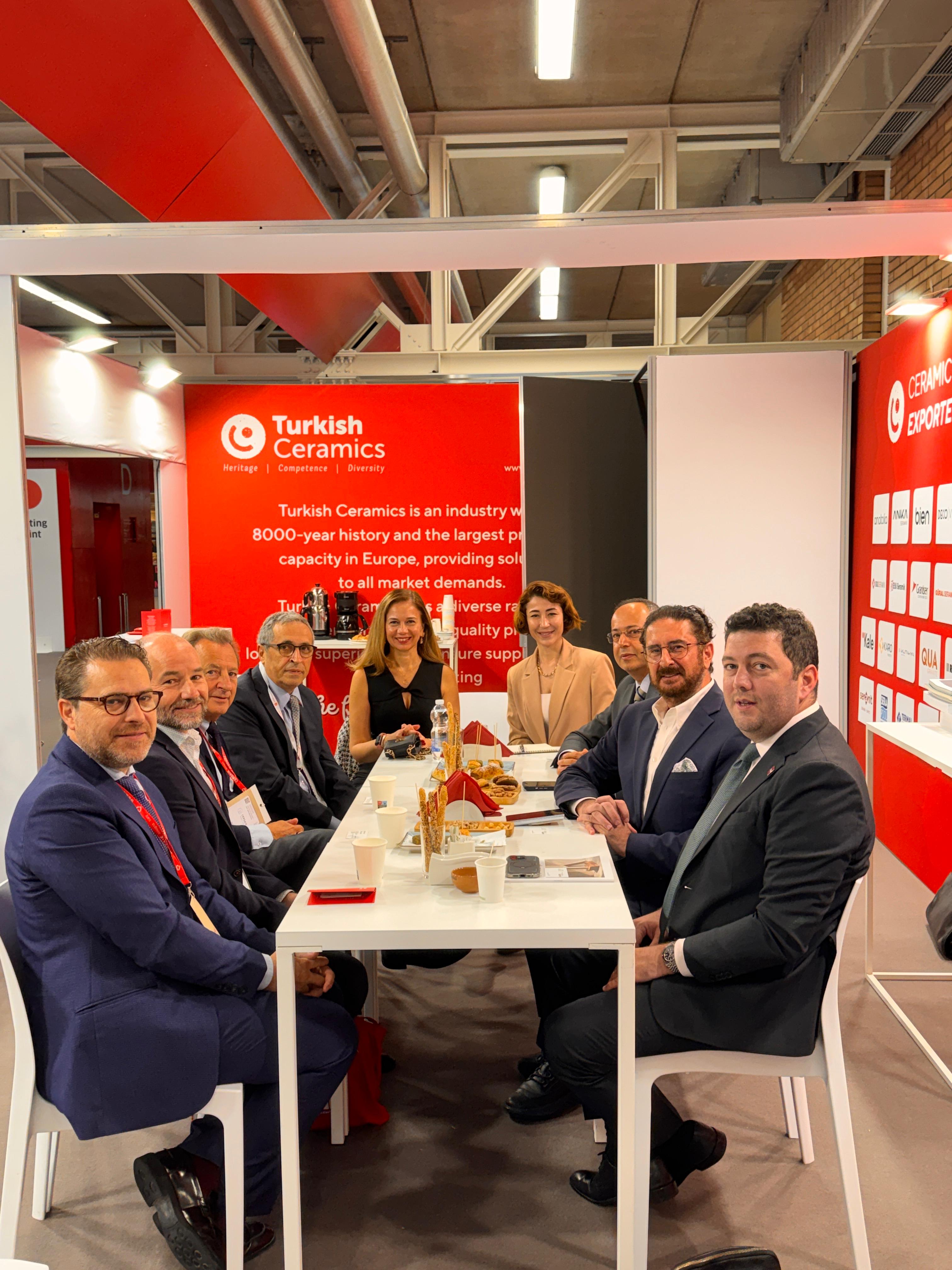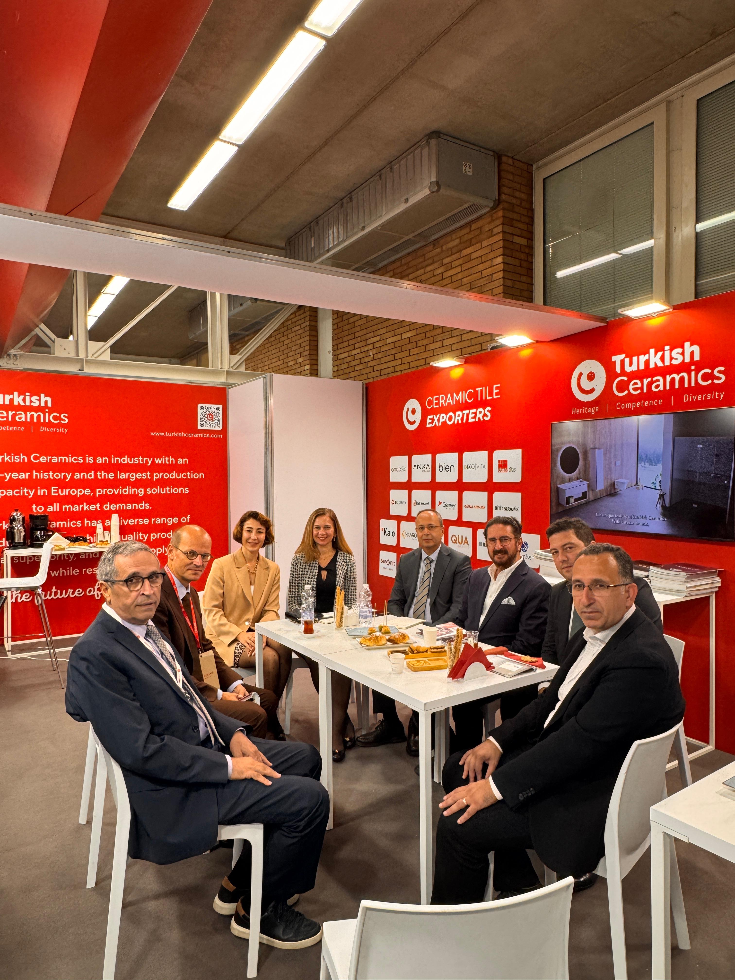 In addition, the President of the Spanish Ceramic Tile Manufacturers’ Association (ASCER), Ismael García Peris, and his delegation visited our booth. During the meeting, cooperation opportunities between the Turkish and Spanish ceramic sectors, as well as expectations for the future of the industry, were discussed. On the second day of the fair, a meeting was also held with Renaud Batier, Secretary General of the European Ceramic Industry Association(Cerame-Unie), where insights were shared on developments in the European ceramics industry.